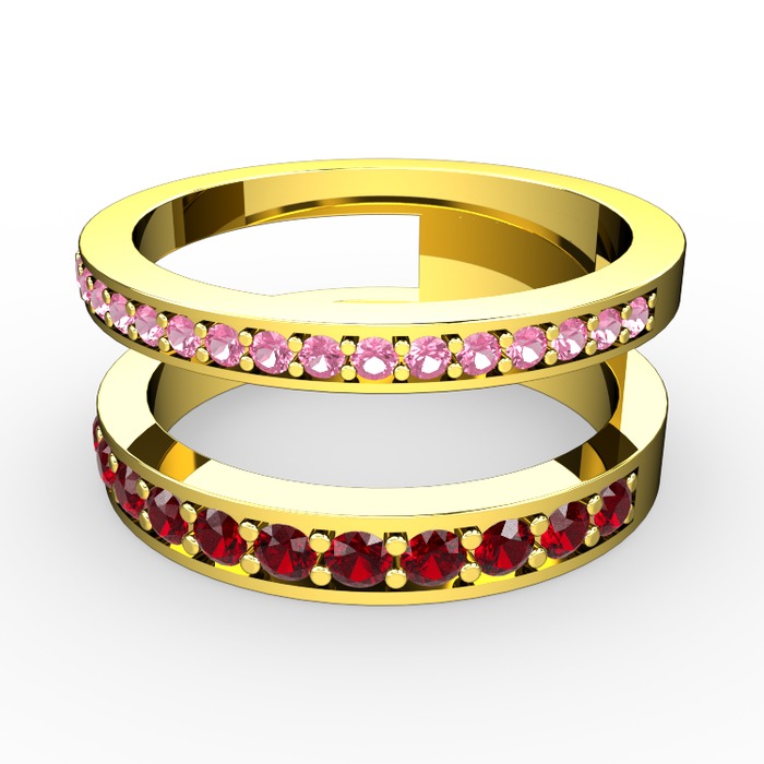Pembe kuvars ve garnet 925 ayar altın kaplama gümüş yüzük