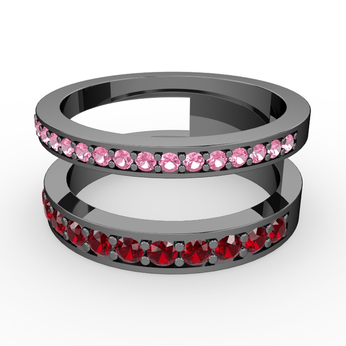 Pembe kuvars ve garnet 925 ayar siyah rodyum kaplama gümüş yüzük