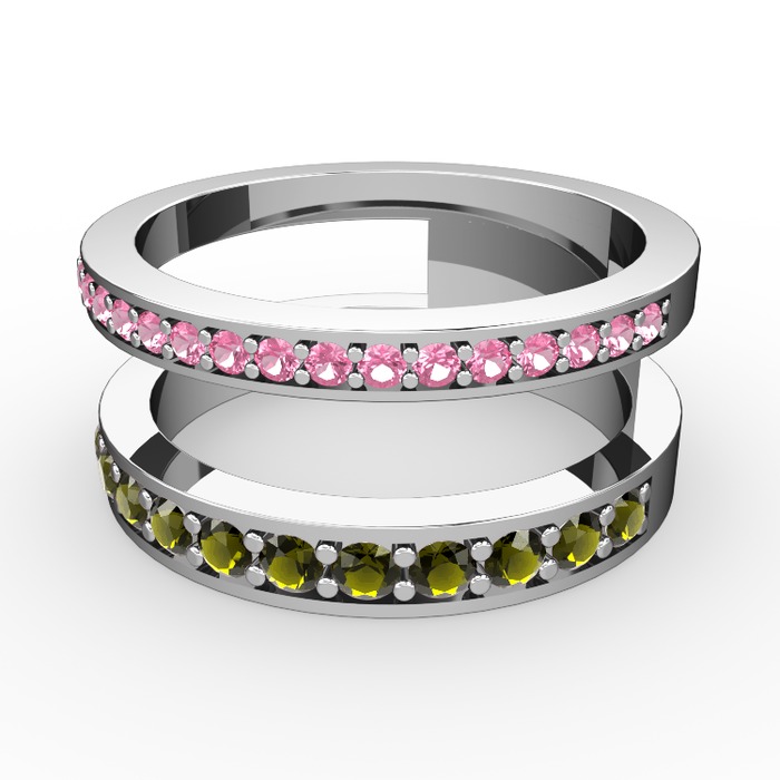 Pembe kuvars ve peridot 8 ayar beyaz altın yüzük