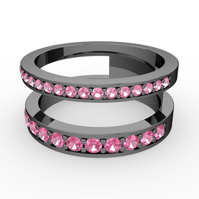 Pembe kuvars 925 ayar siyah rodyum kaplama gümüş yüzük