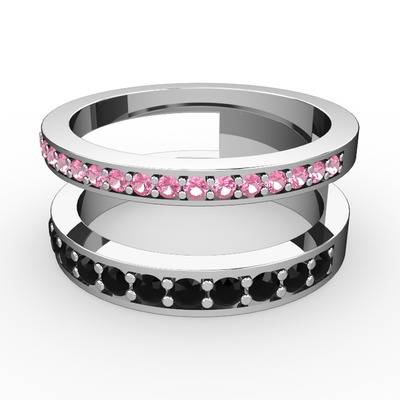 Pembe kuvars ve siyah zirkon 14 ayar beyaz altın yüzük