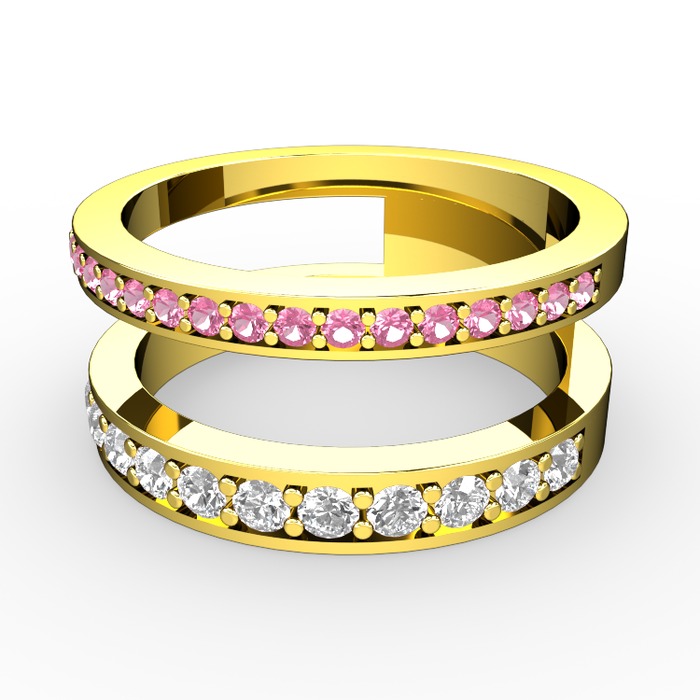 Pembe kuvars ve swarovski 925 ayar altın kaplama gümüş yüzük