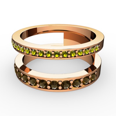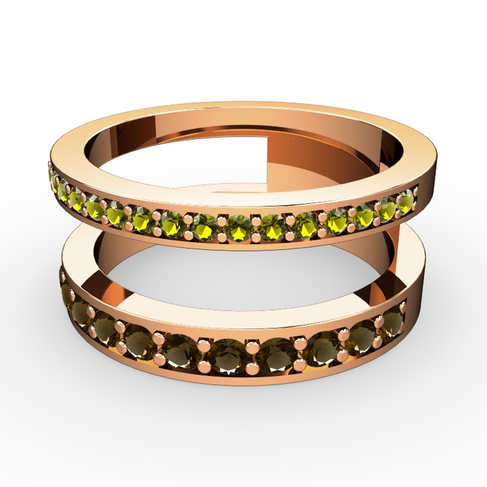 Peridot ve dumanlı kuvars 14 ayar rose altın yüzük