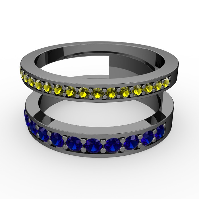 Peridot ve lab safir 925 ayar siyah rodyum kaplama gümüş yüzük