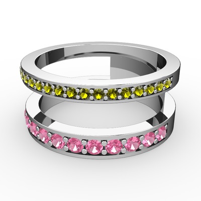 Peridot ve pembe kuvars 18 ayar beyaz altın yüzük