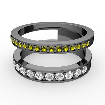 Peridot ve pırlanta 925 ayar siyah rodyum kaplama gümüş yüzük (0.54 karat)