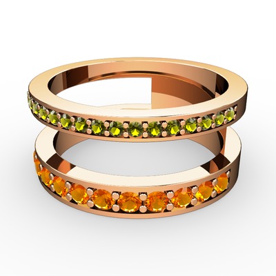 Peridot ve sitrin 14 ayar rose altın yüzük