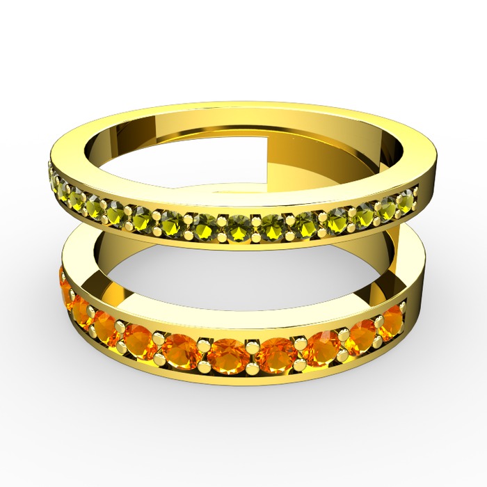 Peridot ve sitrin 925 ayar altın kaplama gümüş yüzük