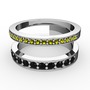 Peridot ve siyah zirkon 8 ayar beyaz altın yüzük