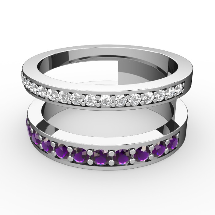 Pırlanta ve ametist 14 ayar beyaz altın yüzük (0.253 karat)