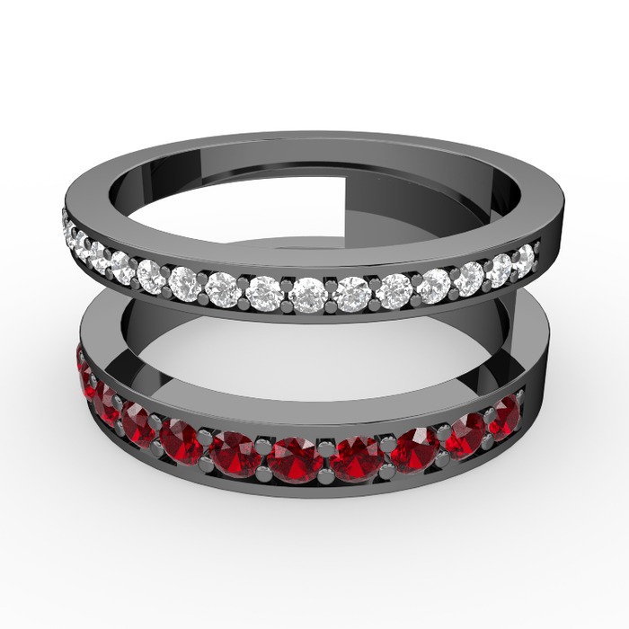 Pırlanta ve garnet 925 ayar siyah rodyum kaplama gümüş yüzük (0.253 karat)