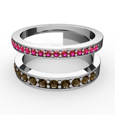 Rodolit garnet ve dumanlı kuvars 18 ayar beyaz altın yüzük