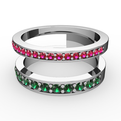 Rodolit garnet ve yeşil kuvars 14 ayar beyaz altın yüzük
