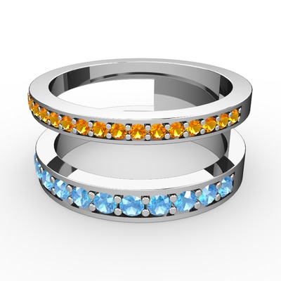 Sitrin ve akuamarin 8 ayar beyaz altın yüzük