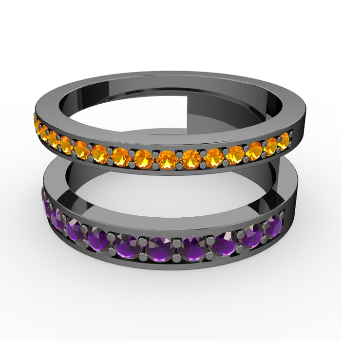 Sitrin ve ametist 925 ayar siyah rodyum kaplama gümüş yüzük