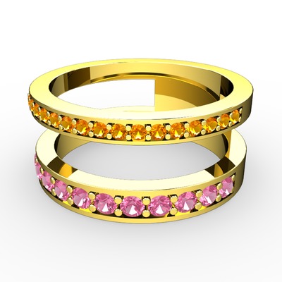 Sitrin ve pembe kuvars 8 ayar altın yüzük