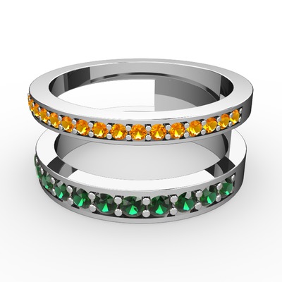 Sitrin ve yeşil kuvars 14 ayar beyaz altın yüzük