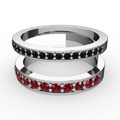 Siyah zirkon ve garnet 14 ayar beyaz altın yüzük