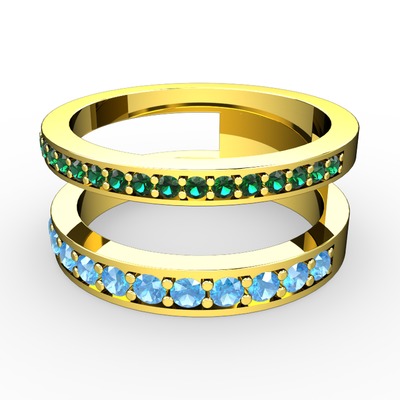 Yeşil kuvars ve akuamarin 14 ayar altın yüzük
