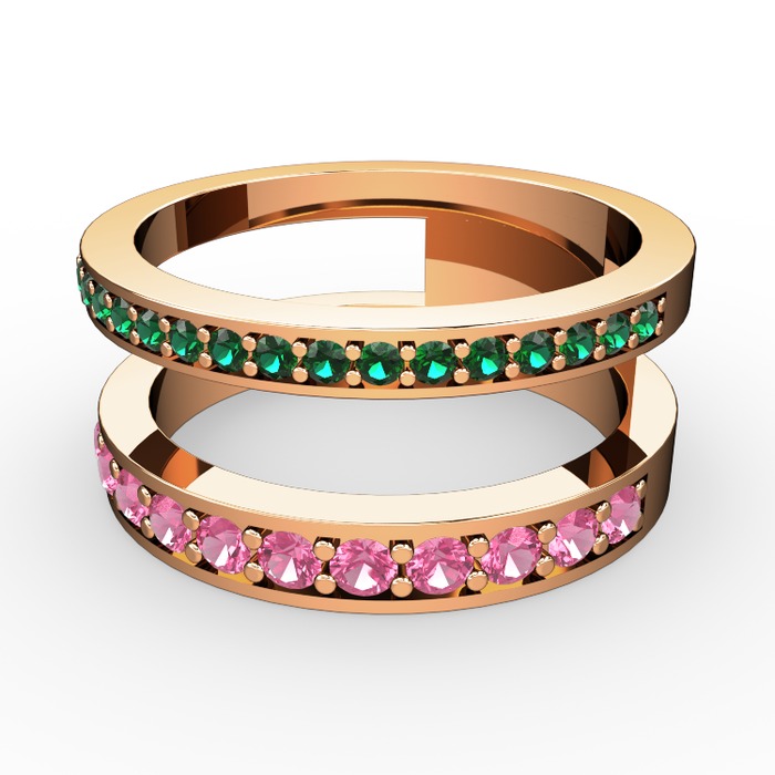 Yeşil kuvars ve pembe kuvars 18 ayar rose altın yüzük