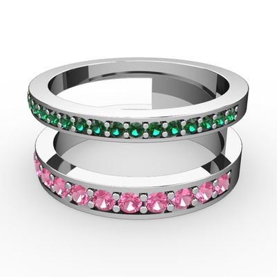 Yeşil kuvars ve pembe kuvars 8 ayar beyaz altın yüzük