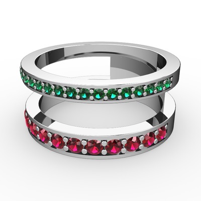 Yeşil kuvars ve rodolit garnet 14 ayar beyaz altın yüzük