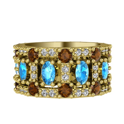 Akuamarin, dumanlı kuvars ve pırlanta 18 ayar altın yüzük (0.66 karat)