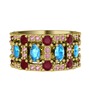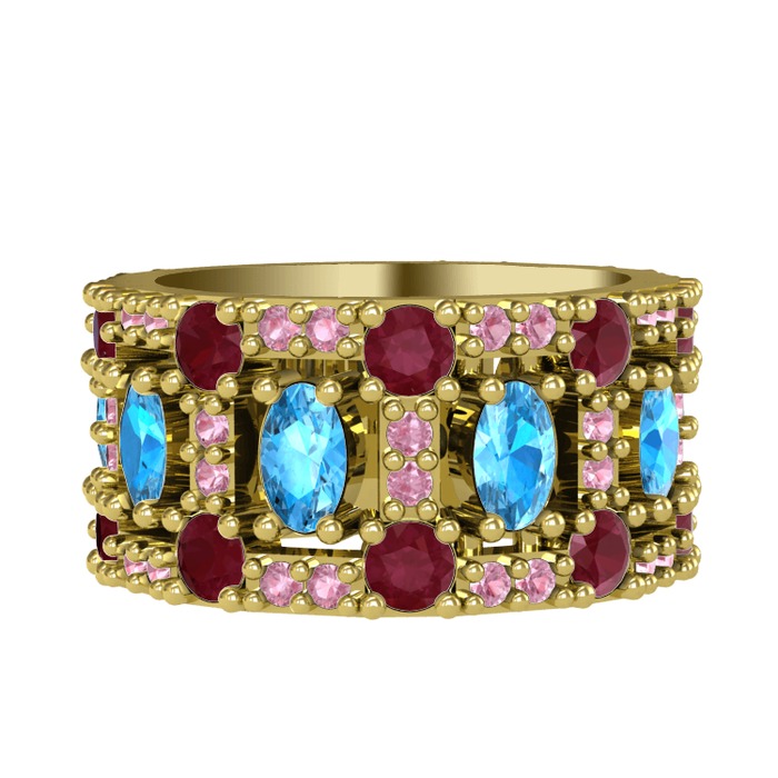 Akuamarin, kök yakut ve pembe kuvars 925 ayar altın kaplama gümüş yüzük