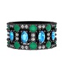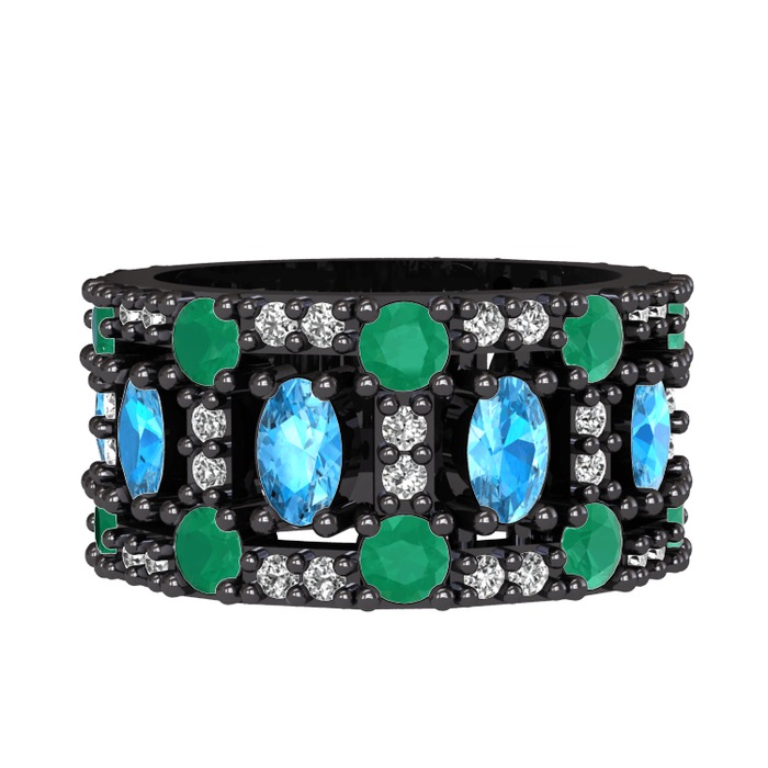 Akuamarin, kök zümrüt ve pırlanta 925 ayar siyah rodyum kaplama gümüş yüzük (0.66 karat)