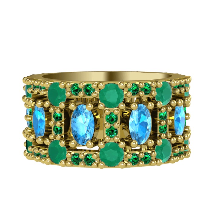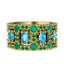 Akuamarin, kök zümrüt ve yeşil kuvars 925 ayar altın kaplama gümüş yüzük