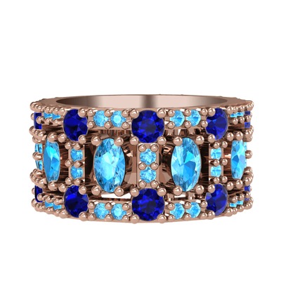 Akuamarin ve lab safir 14 ayar rose altın yüzük