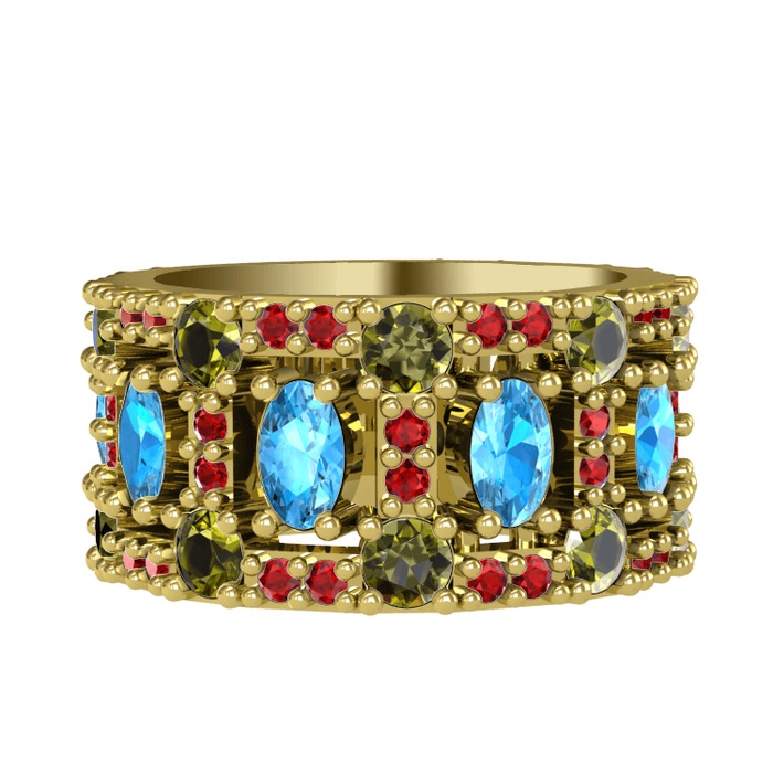 Akuamarin, peridot ve garnet 8 ayar altın yüzük