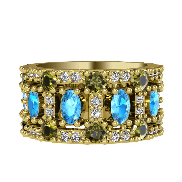 Akuamarin, peridot ve swarovski 8 ayar altın yüzük
