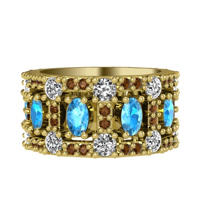 Akuamarin, pırlanta ve dumanlı kuvars 8 ayar altın yüzük (1.76 karat)