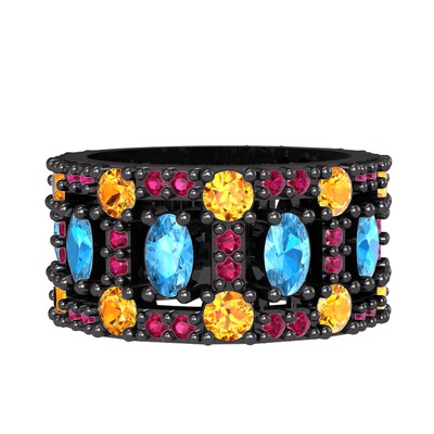 Akuamarin, sitrin ve rodolit garnet 925 ayar siyah rodyum kaplama gümüş yüzük