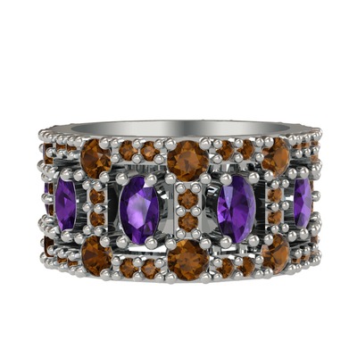 Ametist ve dumanlı kuvars 14 ayar beyaz altın yüzük