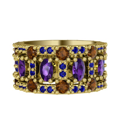 Ametist, dumanlı kuvars ve lab safir 925 ayar altın kaplama gümüş yüzük