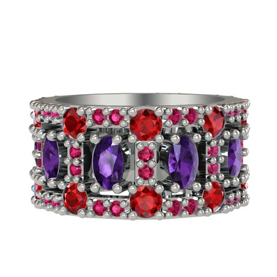 Ametist, garnet ve rodolit garnet 14 ayar beyaz altın yüzük