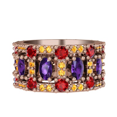 Ametist, garnet ve sitrin 18 ayar rose altın yüzük