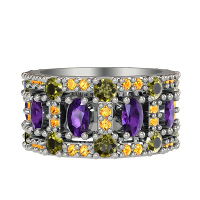 Ametist, peridot ve sitrin 14 ayar beyaz altın yüzük