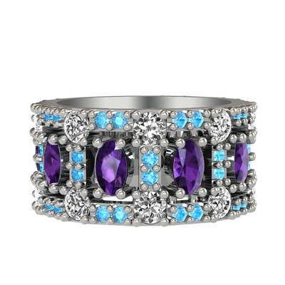 Ametist, pırlanta ve akuamarin 18 ayar beyaz altın yüzük (1.76 karat)