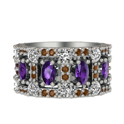 Ametist, pırlanta ve dumanlı kuvars 8 ayar beyaz altın yüzük (1.76 karat)