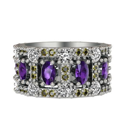 Ametist, pırlanta ve peridot 925 ayar gümüş yüzük (1.76 karat)