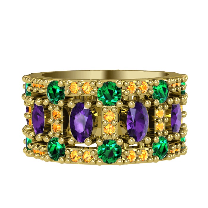 Ametist, yeşil kuvars ve sitrin 925 ayar altın kaplama gümüş yüzük