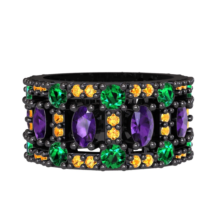 Ametist, yeşil kuvars ve sitrin 925 ayar siyah rodyum kaplama gümüş yüzük