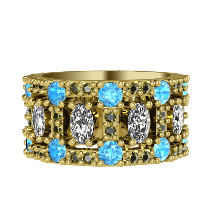 Beyaz zirkon, akuamarin ve peridot 18 ayar altın yüzük