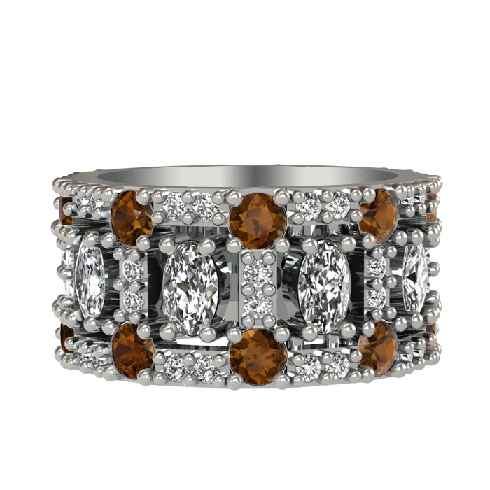 Beyaz zirkon, dumanlı kuvars ve swarovski 925 ayar gümüş yüzük