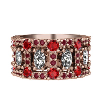 Beyaz zirkon, garnet ve kök yakut 925 ayar rose altın kaplama gümüş yüzük