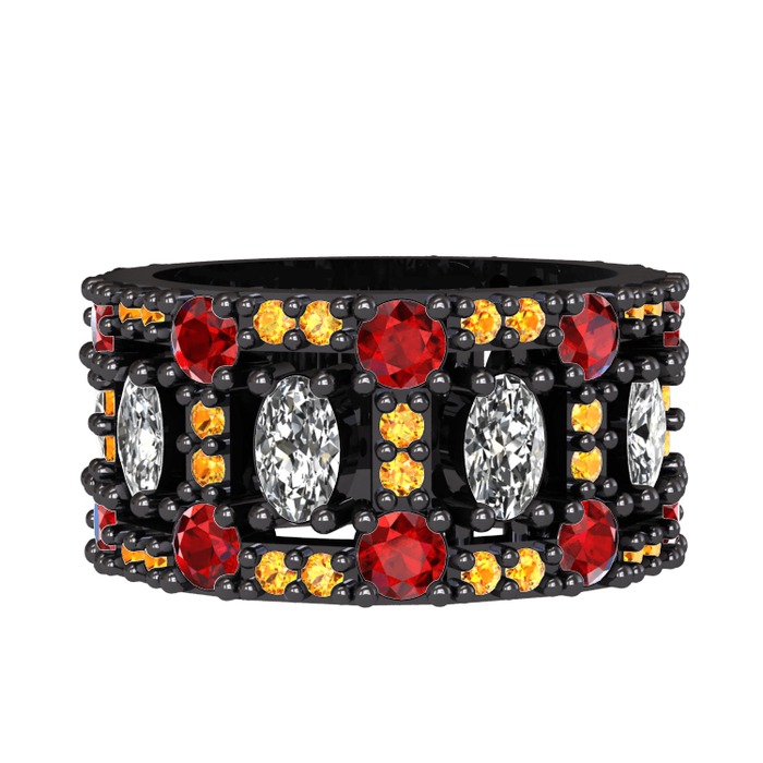 Beyaz zirkon, garnet ve sitrin 925 ayar siyah rodyum kaplama gümüş yüzük