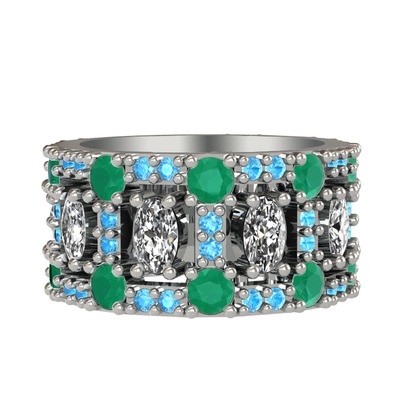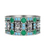 Beyaz zirkon, kök zümrüt ve akuamarin 925 ayar gümüş yüzük